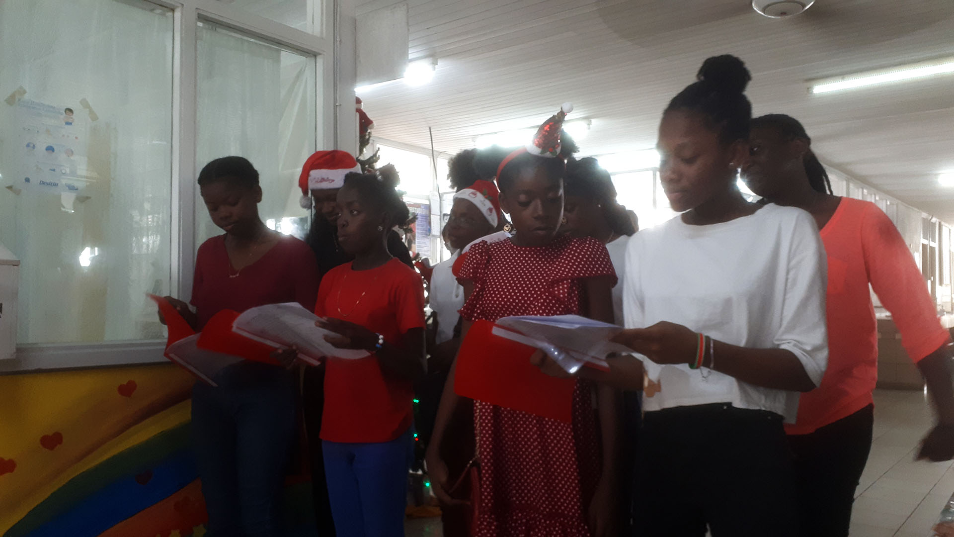 Op zondag 24 december om 12.00 uur heeft het Jeugdkoor ‘Moravian Youth Quior’ onder leiding van muziekpedagoge Mavis Noordwijk een Kerstoptreden verzorgd op de Kinderafdeling van het ’s Lands Hospitaal aan de Tourtonnelaan. Bij deze gelegenheid werd als Kerstgeschenk een exemplaar van het kinderboek ‘De laatste zendingsarts’, het verhaal over het leven en werk van dokter Miep Dekker in het binnenland van Suriname overhandigd aan hoofdzuster Claudia Bruinhart van de Kinderafdeling. De bedoeling is dat de grotere kinderen die in het ziekenhuis zijn opgenomen het verhaal zelf zullen lezen en dat verpleegkundigen het verhaal aan de kleinere zieke kinderen zullen voorlezen, waardoor zij hun ziekte en de pijnen eventjes kunnen vergeten.