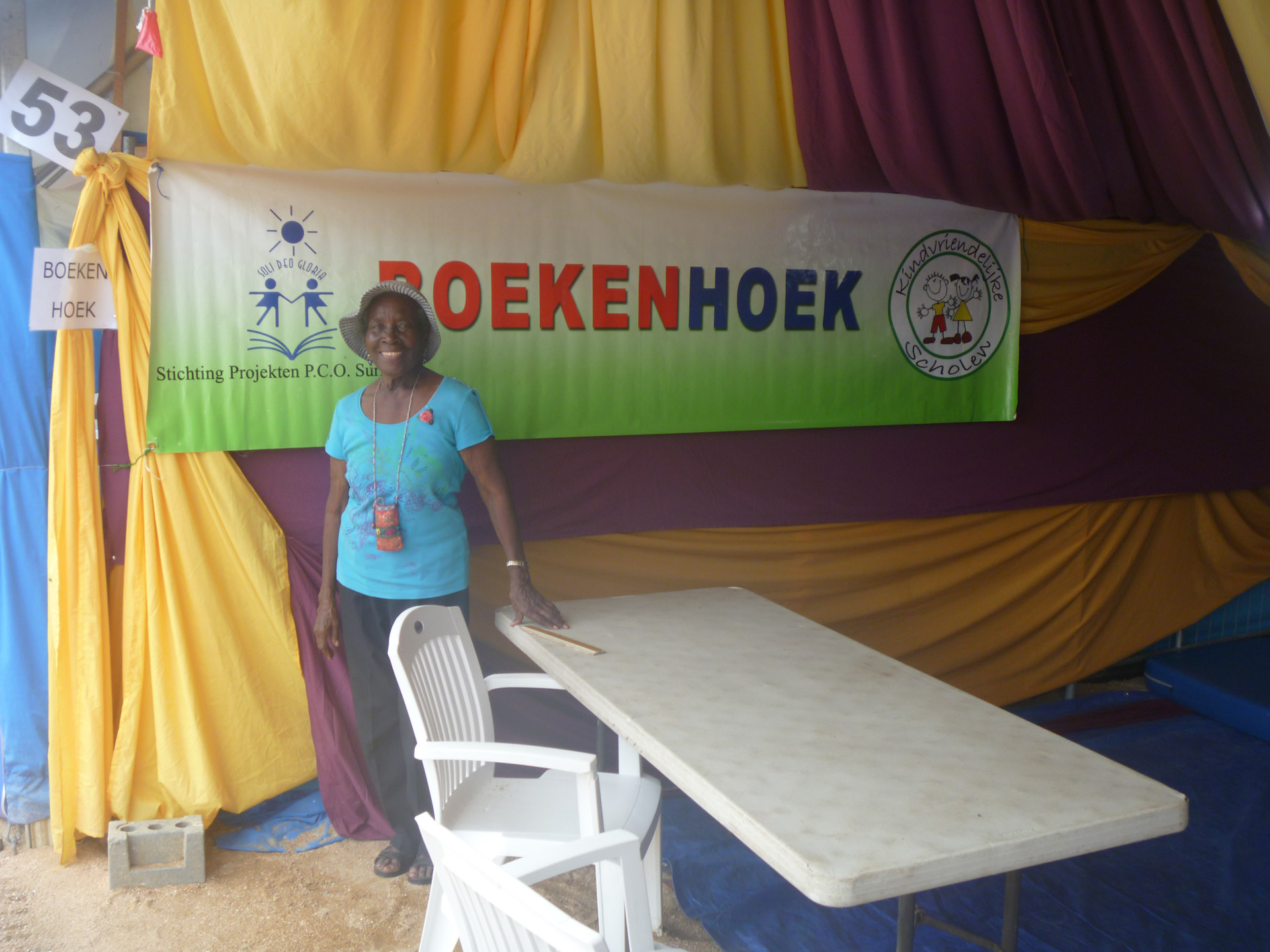 Op het Kinderboekenfestival van de jaren 2000 tot en met 2010 was de Boekenhoek een grote trekpleister voor alle bezoekers die naar mooie verhalen wilden luisteren. De verhalen werden om beurten voorgelezen of verteld door twee senioren burgers, die als vaste vrijwilliger participeerden in elk kinderboekenfestival in Paramaribo, in de districten en in het binnenland, namelijk tante Edmé Carla Slooten-Dodson en oom John van Ommeren. Deze twee seniore vrijwillgers, die op het Kinderboekenfestival onvermoeibaar in de Boekenhoek stonden, zijn nu beiden overleden. Wij denken met dankbaarheid terug aan de bijdrage die zij jarenlang aan het kinderboekenfestival hebben geleverd en in onze herinneringen blijven zij voortleven.