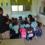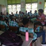 Behalve het voorgelezen boek, mochten de kinderen een doos vol kinderboeken bekijken en daaruit één kiezen om zelf te lezen. Zo werd de schoolbibliotheek en mediatheek spontaan aangevuld met enkele kinderboeken van de Nationale Stichting Kinderboekenfestival Suriname!