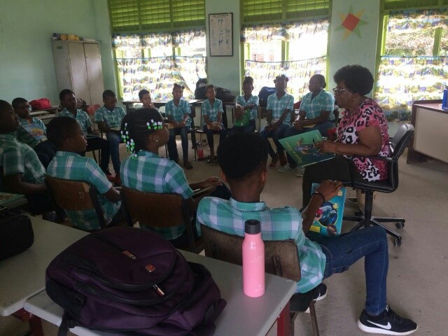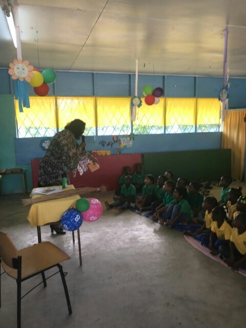 Op woensdag 7 maart mocht Yvonne Caprino in de zesde klas op de R.E.C. Dothschool voorlezen. Zij koos ervoor om uit het reuze kinderboek ‘Pelifant en Olikaan’ van Marjanne Prins en Joes Wanders voor te lezen. Het is een kinderboek dat in 2010 tijdens het Kinderboekenfestival in Brokopondo tot leven kwam. De kinderen konden genieten van de belevenissen van Pelifant en Olikaan, die evenals vele mensen niet tevreden zijn met de manier waarop ze geschapen zijn.