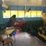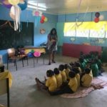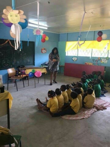 Op de H.P.G. Latourschool was de voorleesdag op vrijdag 9 maart gepland en de leerlingen mochten genieten van verhalen van verschillende voorleesooms en tantes. Vandana Ramlal van het KBF-bestuur las de leerlingen van de onderbouw voor uit het kinderboek ‘Kakak, de kakkerlak en mevrouw Oma’ van Indra Hu-Ramdas en zij maakte er voor de kids een speciale voorleesactiviteit van compleet met ballonen en taart!