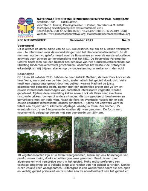 Met genoegen presenteert de Nationale Stichting Kinderboekenfestival Suriname haar derde Nieuwsbrief over de ontwikkelingen van het Kindereducatiecentrum!