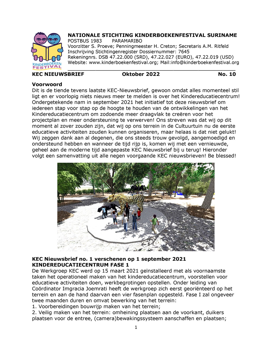 Met genoegen presenteert de Nationale Stichting Kinderboekenfestival Suriname haar tiende Nieuwsbrief over de ontwikkelingen van het Kindereducatiecentrum!