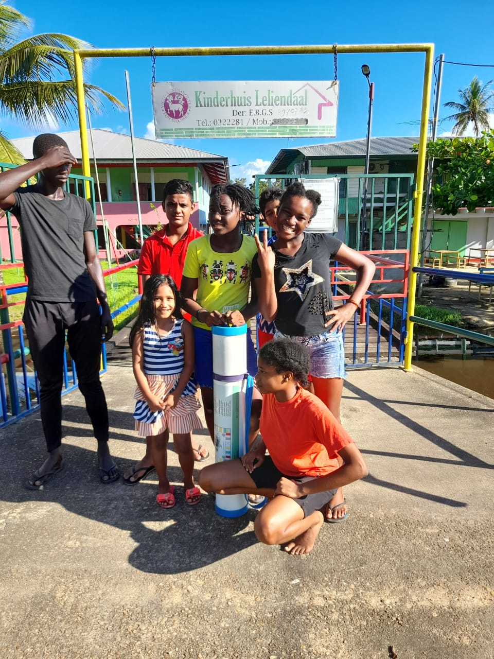 Om de jeugd bewust te maken van hoe iedereen zuinig kan omgaan met energie, heeft Stichting Kinderboekenfestival in oktober 2018 een creatief ‘Energie Educatiespel’ ontwikkeld. Verschillende instellingen en personen hebben lang vóór het uitbreken van de coronapandemie in Suriname een exemplaar van het spel in ontvangst mogen nemen. Vanwege de lock downs lag de distributie enige tijd stil, maar op dinsdag 22 juni jl. ontving Kinderhuis Leliëndaal een groot formaat exemplaar van dit Energie Educatiespel van Stichting Kinderboekenfestival. Dit exemplaar voor de kinderen van het kinderhuis werd gesponsord door Ruth Pijpers-Botland. Ongeveer 50 kinderen die het bij hun eigen familie heel moeilijk hebben, wonen in Kinderhuis Leliëndaal van de Evangelische Broedergemeente in het disctrict Commewijne. De directrice van het kinderhuis, zuster Christina Diran, nam het exemplaar dankbaar in ontvangst. De kinderen gingen na ontvangst meteen aan de slag met het spel en hebben aangegeven er goed gebruik van te zullen maken. De directrice bedankte namens de kinderen de sponsor en Stichting Kinderboekenfestival voor het educatief spel. Stichting Kinderboekenfestival hoopt dat het spelen van dit groepsspel zal bijdragen aan de energiebewustwording van de kinderen in het tehuis en kinderen van de omgeving!